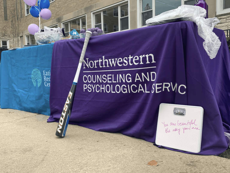 Members of the Eating Recovery Center, Northwestern’s Health Promotion and Wellness and NU Counseling and Psychological Services greeted students outside the steps of Allison Hall, presenting resources around body acceptance on Thursday.