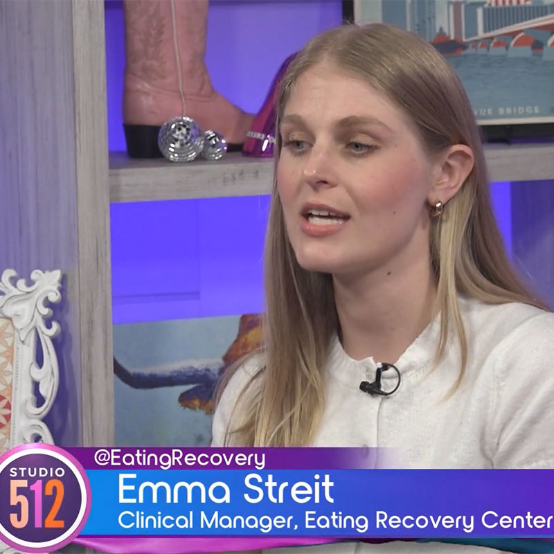 ERC Clinical Manager Emma Streit, LCSW, was a featured expert on Studio512 (KXAN Austin) to share information and spread awareness about eating disorders. In this segment, Streit talks about the services our Austin location provides (including VIOP), types of eating disorders, warning signs, myths and misconceptions about eating disorders, and how to access help (including our free support groups).