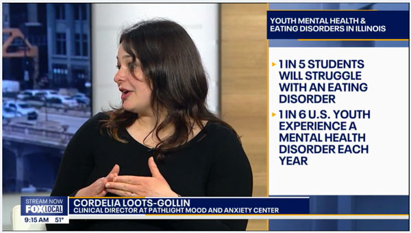 Pathlight Mood & Anxiety Center Clinical Director Cordelia Loots-Gollin was a featured guest on Fox 32 Chicago to discuss how educators (and parents) can identify when a student might be struggling with their mental health; how to talk to kids about what they're going through; and what treatment entails (for eating disorders).